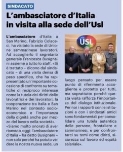 La mattina del 22 gennaio Sua Eccellenza l’Ambasciatore d’Italia a San Marino, Fabrizio Colaceci, ha visitato la sede di Unione Sammarinese Lavoratori.