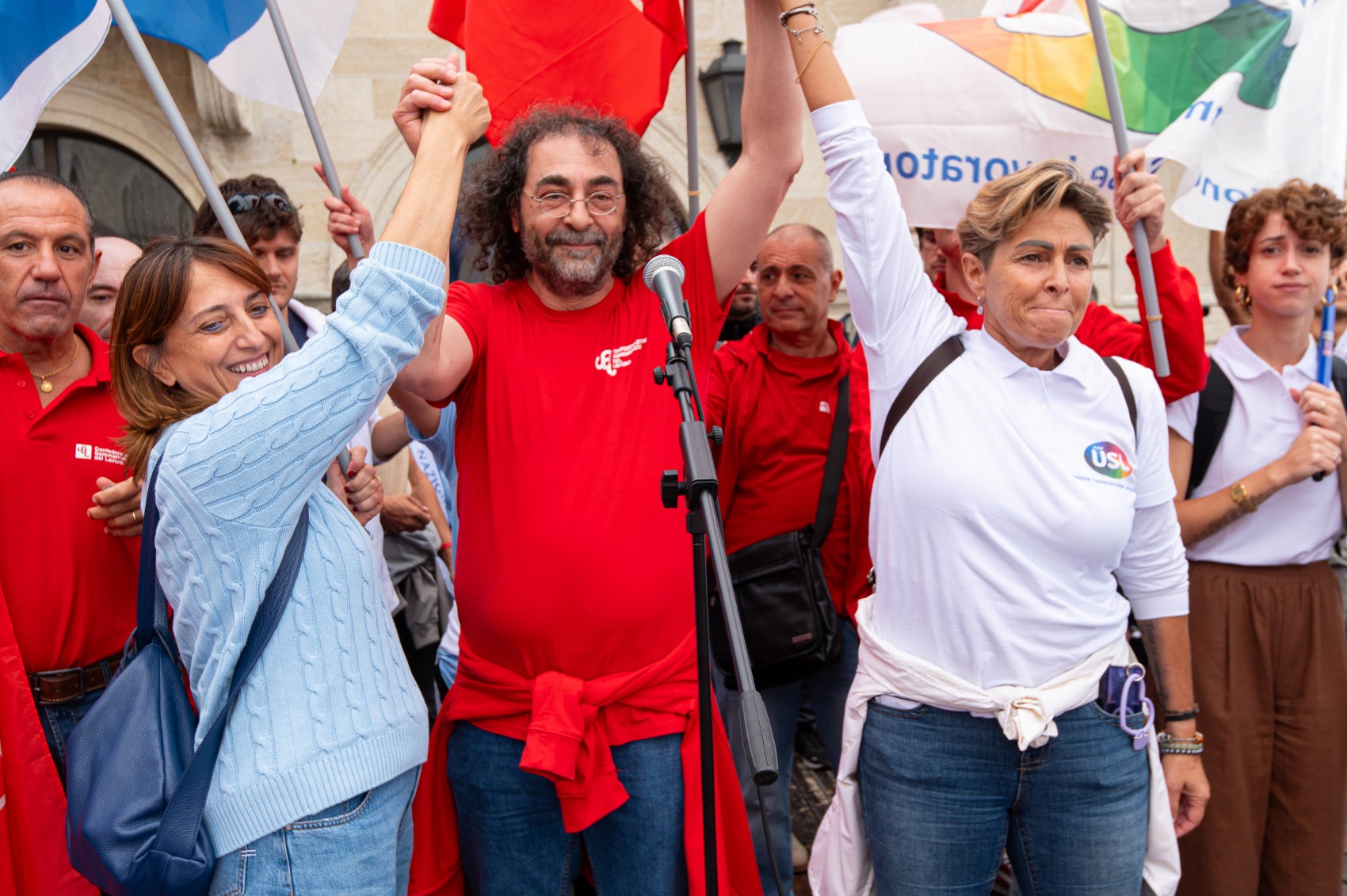 Ci sono migliaia di persone oggi qui, che non accettano di farsi mettere le mani in tasca. I lavoratori non sono limoni da spremere, hanno sempre pagato le tasse; sono quelli che hanno fatto andare avanti il Paese durante il Covid, che hanno fatto in modo che il Paese tenesse anche durante un’inflazione galoppante. Persone che hanno subìto l’aumento delle utenze, affitti alle stelle per colpa delle residenze atipiche, mutui impazziti.